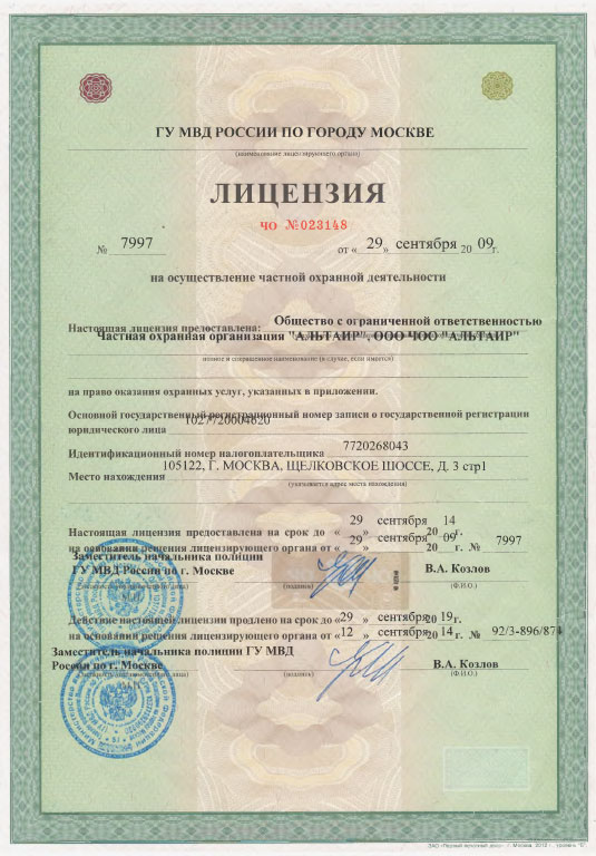 Номера лицензий: № 7997 (№ Л056-00106-77/00036066), № ЮВ-166 (№ Л056-00106-77/00014975)