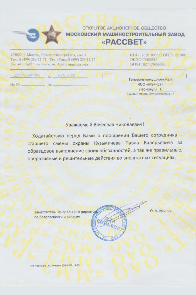 Работа в ЧОП 4года